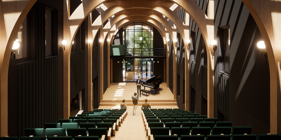 In Rijnsburg, we drew inspiration from the historical abbey that once stood on this site. Its architectural arches were reinterpreted into a structural framework for a new theatre hall that now occupies the former courtyard and forms a bold new entrance to the building. The past becomes a foundation for the future.