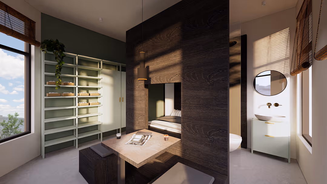 TMRRW is a shortstay concept in Rotterdam that rethinks how we use space. Located in a dense urban area where every square meter matters, TMRRW sets a new standard for efficient and flexible living. Inspired by the Japanese washitsu – also known as the “anything room” – TMRRW blends cultural heritage with contemporary design. It’s a real estate concept that envisions the spaces of tomorrow: sustainable, thoughtful, and intelligently designed.