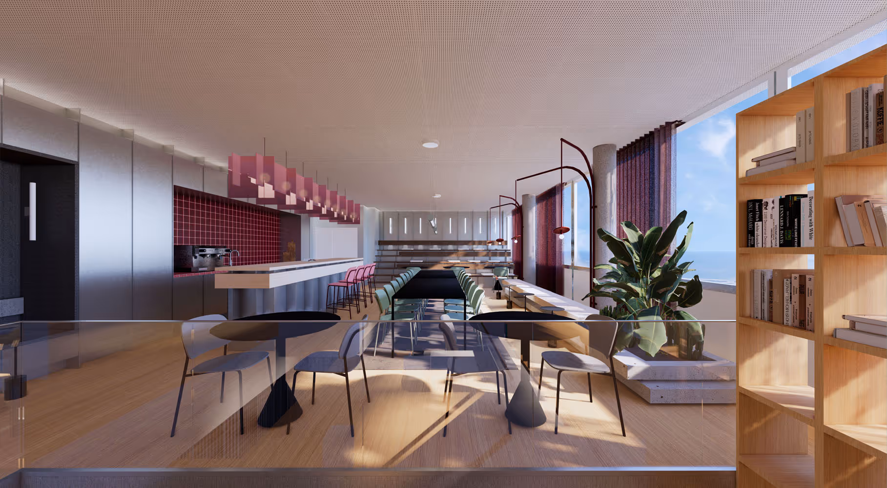 In het iconische Dreischeibenhaus in Düsseldorf ontwerpen en bouwen we een werkomgeving die brug slaat tussen industriële architectuur en menselijke beleving. Op twee verdiepingen van dit modernistische hoogbouwmonument ontvouwt zich een dynamisch landschap van natuurlijke materialen, met een sculpturale trap als verbindend hart. Door lagen van water, klei en hout ontstaat een ruimte die niet alleen functioneert, maar ook verbindt – een warme uitnodiging tot samenwerken, ontmoeten en groeien.